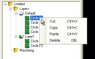 Drawing objects can be moved between layers using cut, copy and paste, or by simply dragging and dropping them within the drawing tree view.