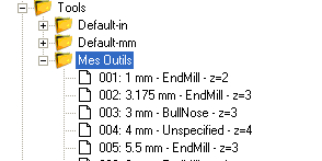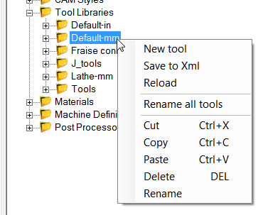 Libraries of tools can be maintained in the system tab’s Tools folder.
