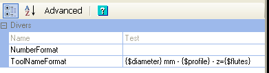 The name can be automatically calculated from tool diameter, profile and other parameters by using the Tool Name Format property of the parent tool library.